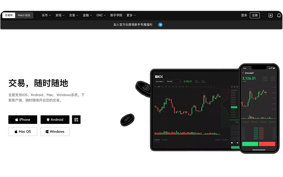欧易iOS/Android端整合行情、交易、资讯、钱包核心功能
